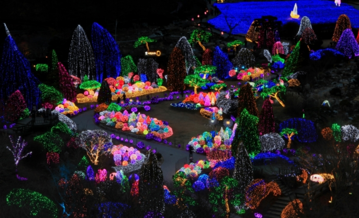 - 소개: 한국의 정원미와 사계절 테마 정원이 어우러진 넓은 수목원으로, 겨울에는 빛 축제가 특히 유명합니다