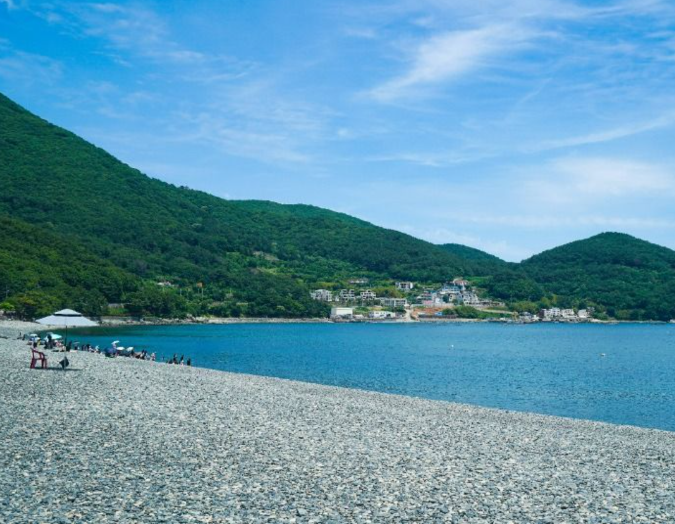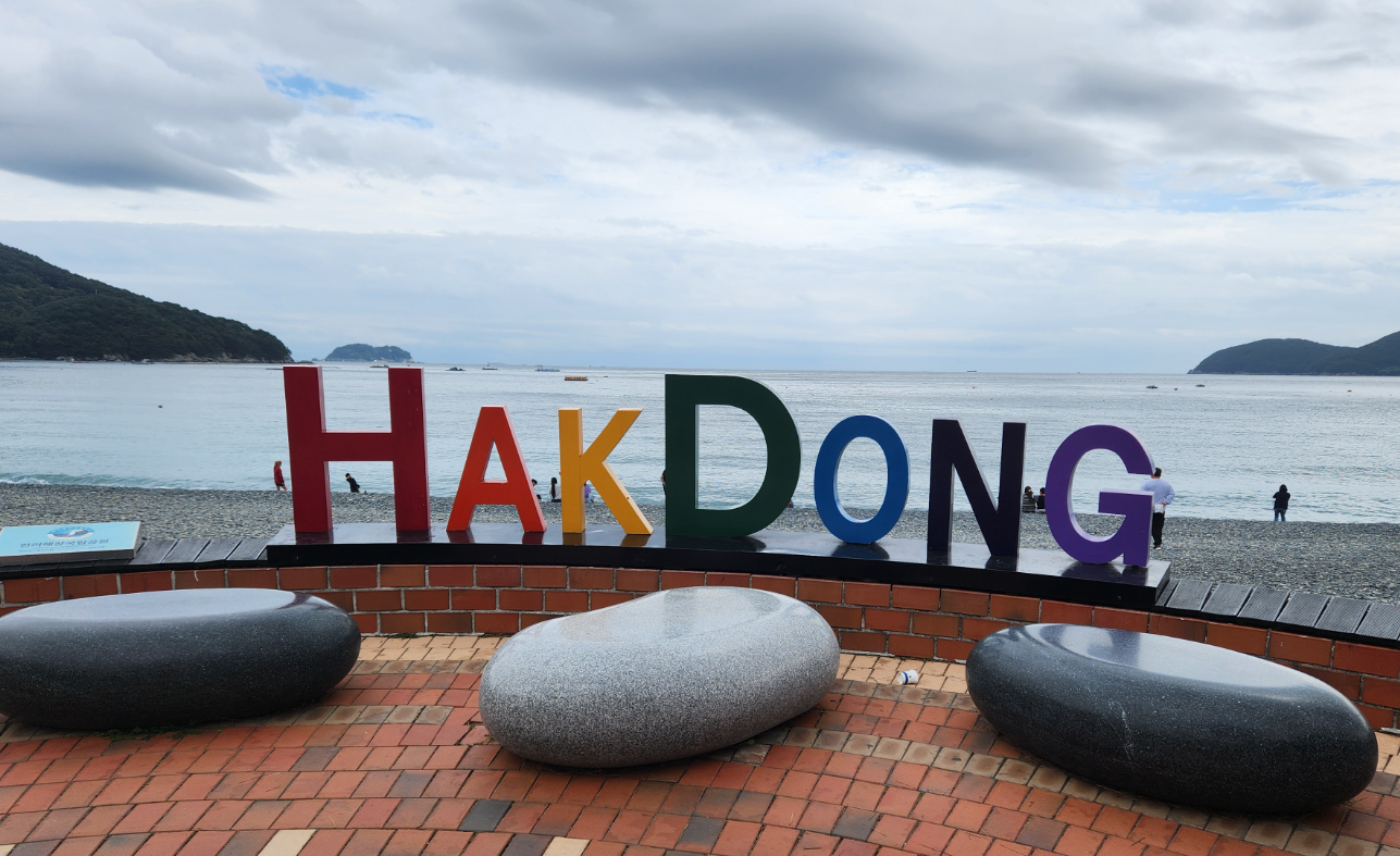 모래가 아닌 흑진주 같은 몽돌로 이루어진 해변으로, 파도에 부딪히는 자갈 소리가 힐링을 줍니다. 봄에는 인근 학동고개 벚꽃길 드라이브 코스로도 유명합니다.