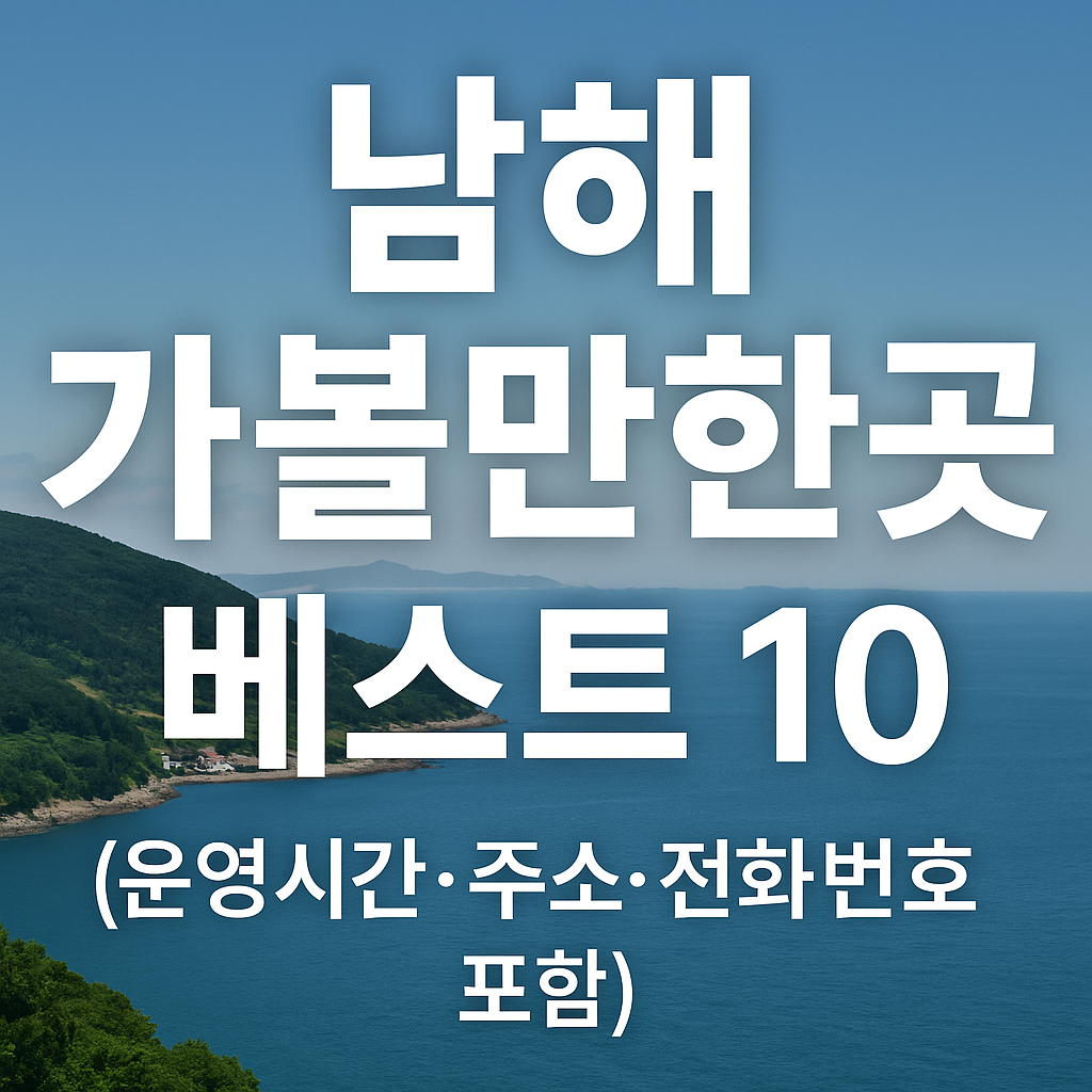 남해는 한려해상국립공원의 비경과 푸른 바다, 독특한 문화가 함께하는 여행지입니다. 아래 10곳은 남해를 처음 방문하는 분도 일정에 넣기 좋은 대표 명소들이며, 각 명소의 주소·운영시간·전화번호를 함께 정리했습니다.