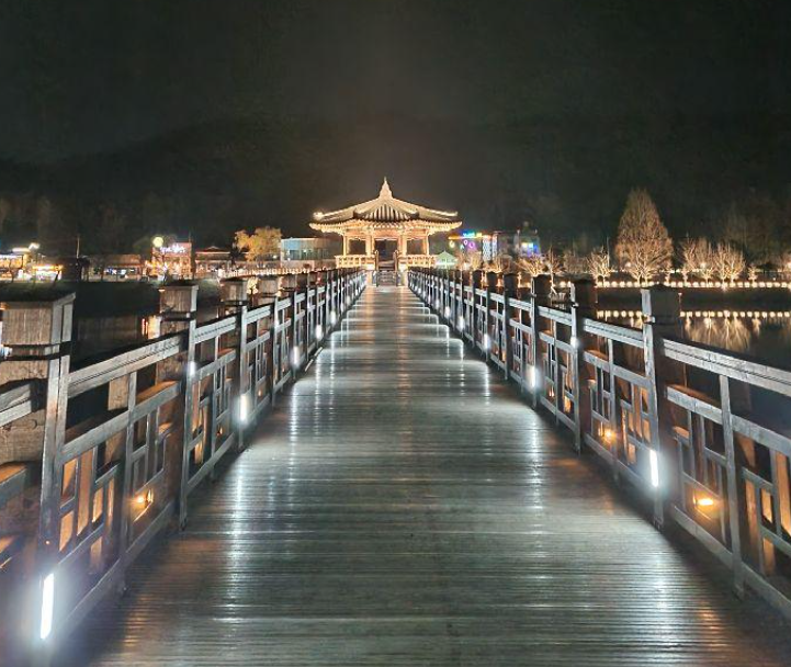 안동댐 위에 놓인 국내 최장 목책 인도교로, 야경이 특히 유명합니다. 밤에는 조명이 켜져 로맨틱한 분위기를 즐길 수 있습니다.
