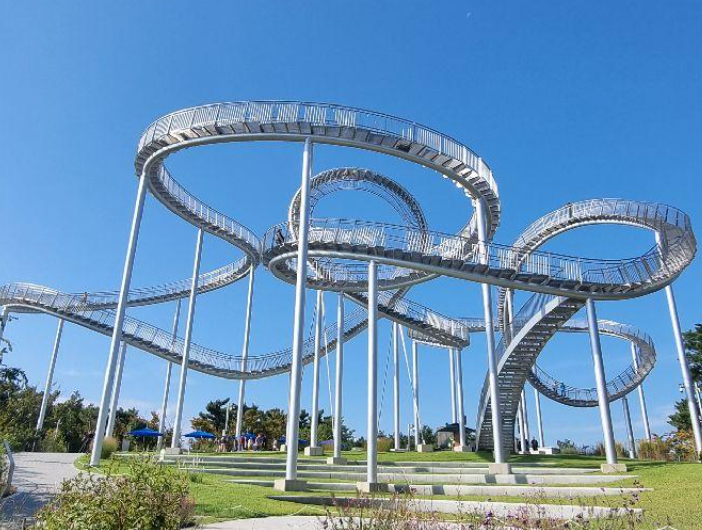 포항의 새로운 랜드마크로 떠오른 스페이스워크는 걷는 롤러코스터라는 별명을 가진 조형물입니다. 환호공원 내에 위치해 있으며, 탁 트인 바다 전망과 독특한 체험이 가능합니다.